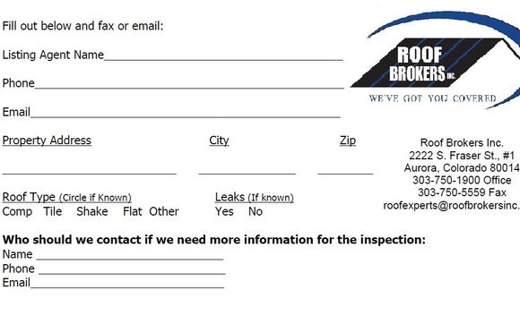 Roof brokers 2222 s fraser st aurora co 80014.
